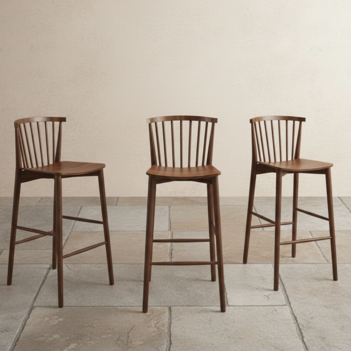 Bangku cafe tinggi ini menggunakan kayu solid pilihan yang terkenal kuat dan stabil. Setiap bagian rangka dibuat dari kayu utuh dengan sambungan presisi, memastikan bangku mampu menahan beban penggunaan harian di lingkungan cafe yang sibuk.
