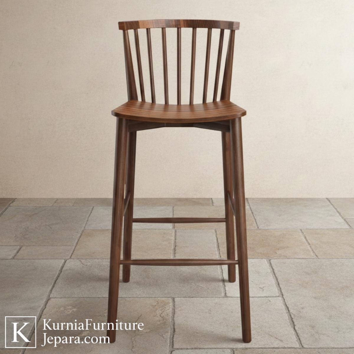 Bangku cafe tinggi kayu solid dengan sandaran vertikal dan desain minimalis modern