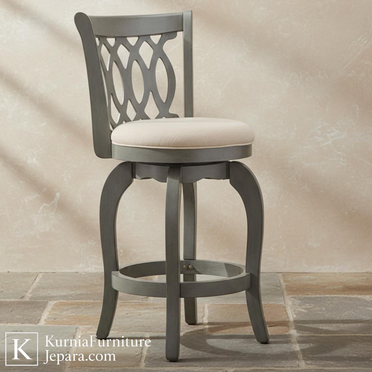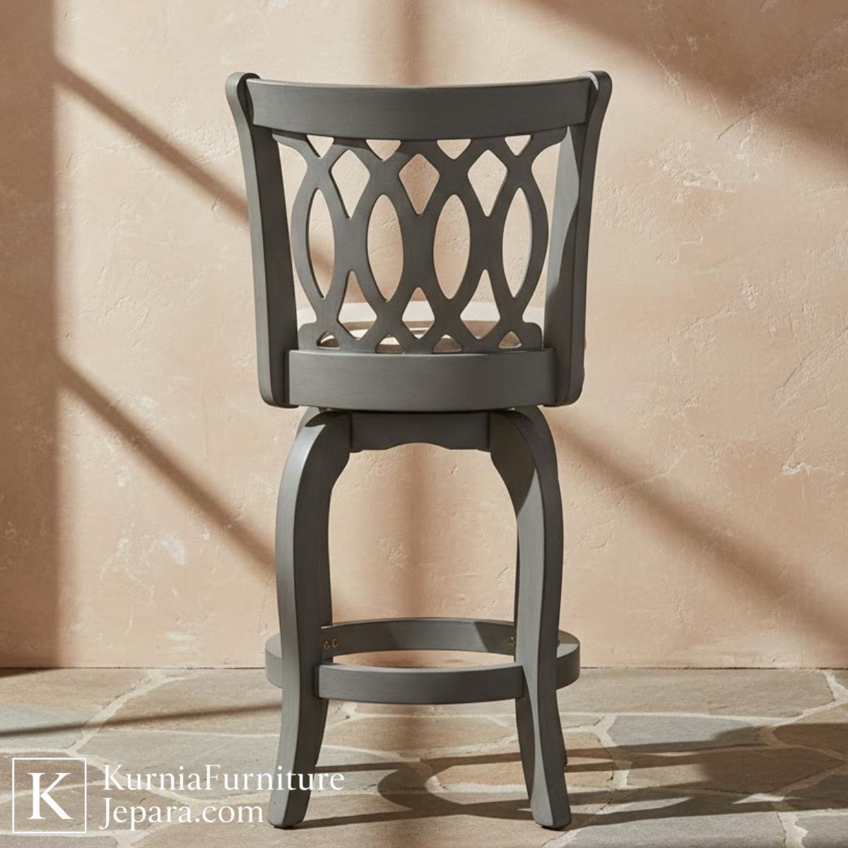 Bangku untuk cafe ini tidak hanya fungsional, tetapi juga berperan sebagai elemen dekoratif. Pola sandaran yang unik menciptakan focal point visual, sementara bentuk kaki yang melengkung anggun menambah kesan eksklusif tanpa terlihat berlebihan. Saat disusun berderet di bar atau area counter, bangku ini mampu menciptakan tampilan yang rapi, profesional, dan memikat secara visual.