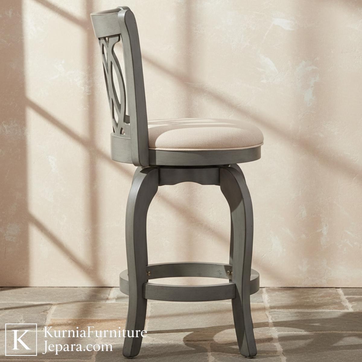Finishing abu-abu doff pada permukaan kayu tidak hanya memberi tampilan elegan, tetapi juga berfungsi sebagai lapisan pelindung terhadap kelembapan dan noda ringan. Warna netral ini memudahkan bangku dipadukan dengan meja kayu, marmer, atau besi tanpa terlihat bertabrakan secara visual.