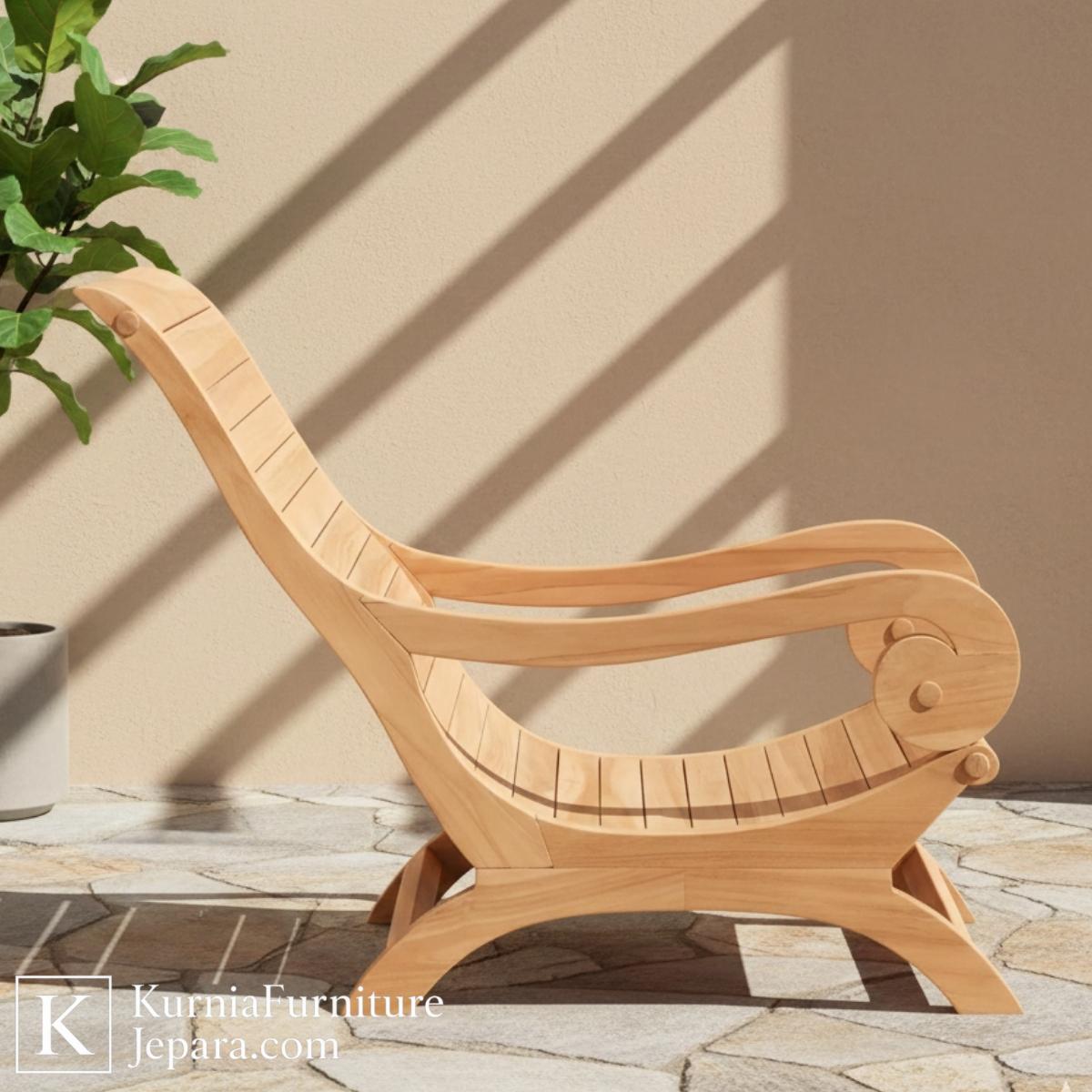 kursi outdoor kayu jati dengan desain lengkung klasik