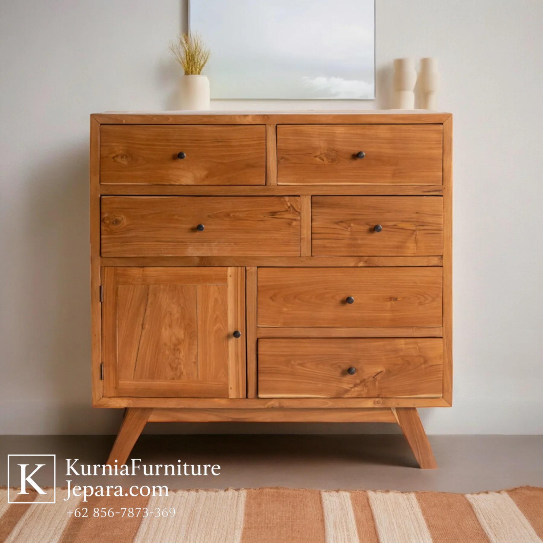 Drawer Cabinet Kayu Jati Desain Natural untuk Ruangan Modern