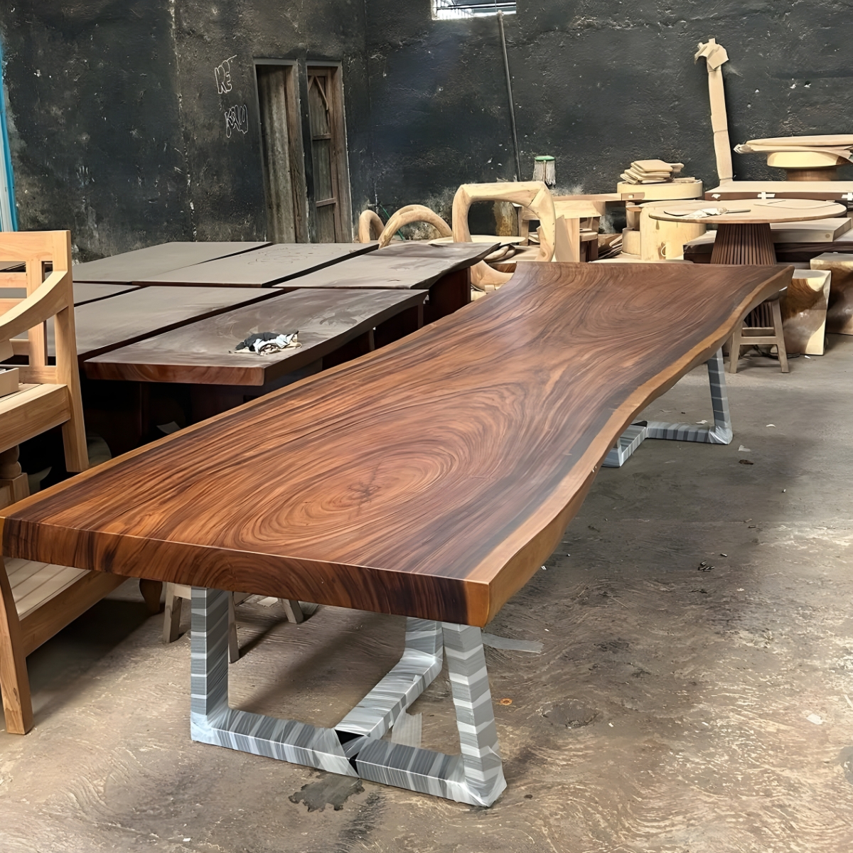 Kayu trembesi dikenal memiliki serat alami yang unik dan karakter kuat. Setiap potongan kayu memiliki pola berbeda, sehingga meja yang dihasilkan bersifat eksklusif dan tidak pasaran. Inilah yang membuat meja trembesi menjadi pilihan utama bagi mereka yang menginginkan furnitur dengan tampilan natural sekaligus berkelas.