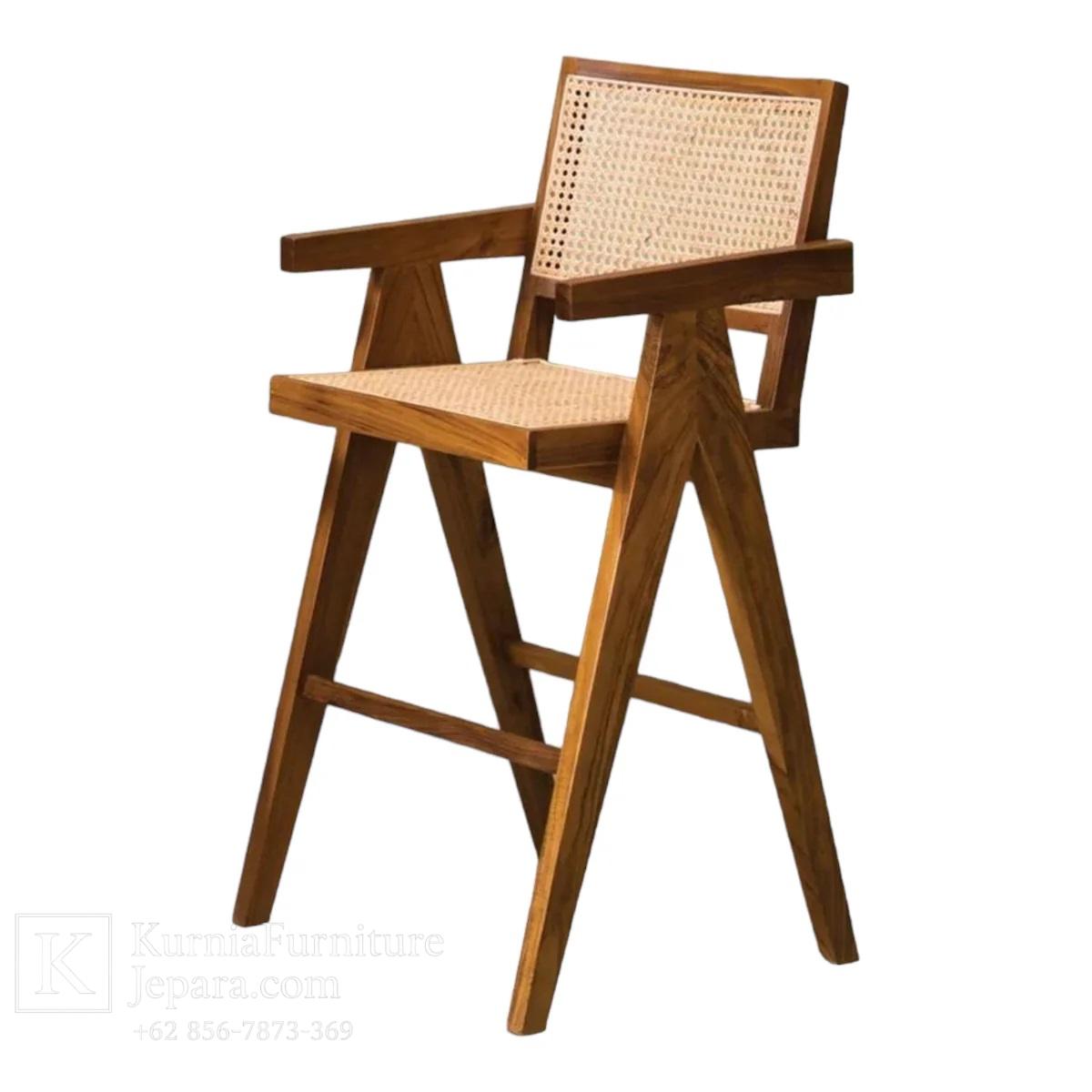 Kursi kayu mini bar ini dirancang khusus untuk menghadirkan kombinasi sempurna antara kenyamanan, kekuatan, dan estetika. Terbuat dari kayu jati solid berkualitas, kursi bar ini menawarkan dudukan ergonomis dan dukungan sandaran yang pas sehingga cocok untuk digunakan berjam-jam — baik di dapur rumah, bar kecil, maupun area lounge di cafe. Sentuhan anyaman rotan pada dudukan atau sandaran menambah aksen natural yang hangat, sementara konstruksi kayu jati memastikan umur pakai yang panjang.