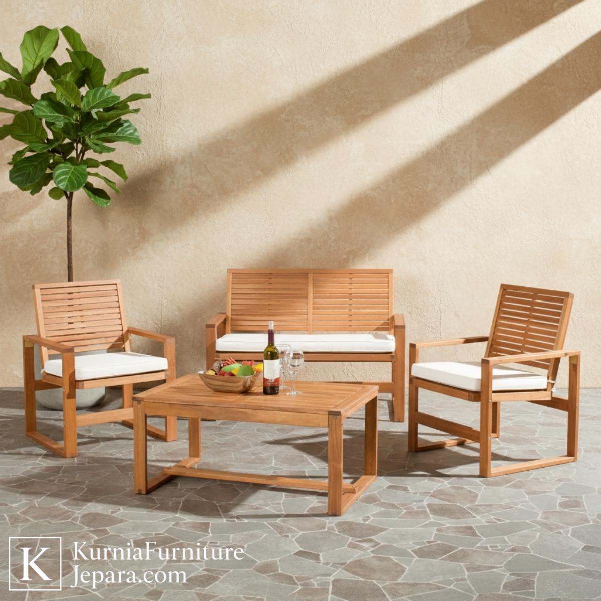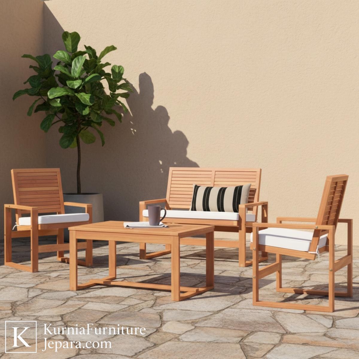 Dengan kombinasi desain yang seimbang, material kayu jati berkualitas, kenyamanan bantalan, serta kemudahan perawatan, kursi set outdoor ini menjadi pilihan ideal bagi siapa pun yang menginginkan furnitur luar ruangan yang fungsional, tahan lama, dan bernilai estetika tinggi.