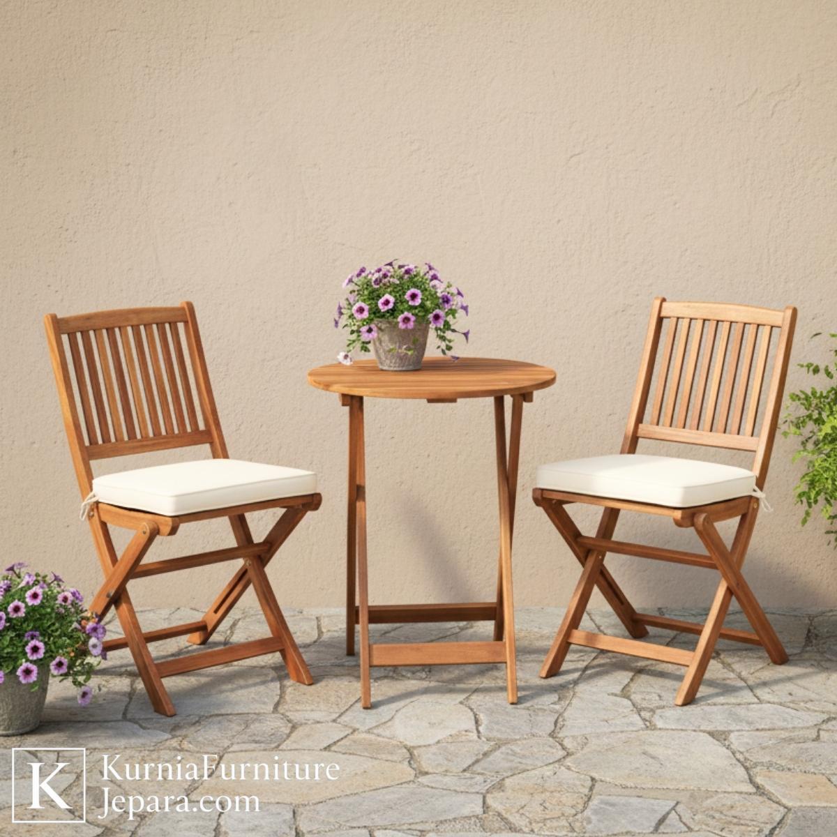 Kursi set outdoor ini dirancang untuk menghadirkan suasana santai yang penuh kehangatan dan keindahan alami di area luar ruangan Anda. Set ini terdiri dari dua kursi kayu lipat dan satu meja bulat yang serasi, menciptakan komposisi ideal untuk menikmati pagi yang cerah, sore yang tenang, atau momen minum kopi bersama orang terdekat. Dengan desain yang bersih dan proporsi yang seimbang, kursi set outdoor ini mampu menjadi pusat perhatian tanpa menghilangkan nuansa alami taman atau teras.
