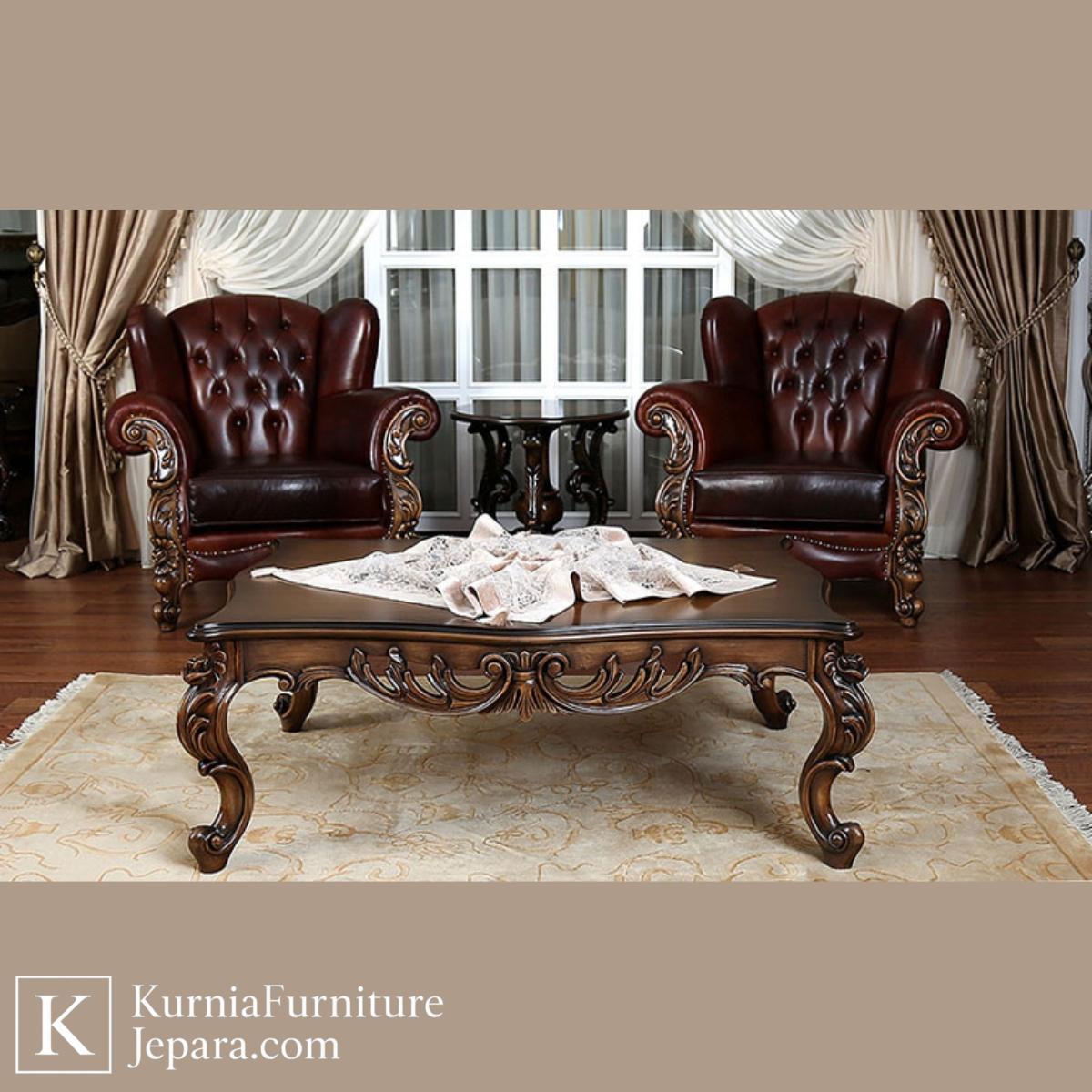 Ukiran halus pada rangka kursi dan meja menunjukkan kualitas pengerjaan tinggi yang tidak mudah ditemukan pada furniture biasa. Finishing rapi mempertegas karakter kayu jati alami yang mewah. Kursi tamu mewah jati Jepara ini sangat cocok untuk rumah klasik, villa, maupun ruang tamu bergaya luxury yang mengutamakan estetika, prestise, dan kenyamanan.