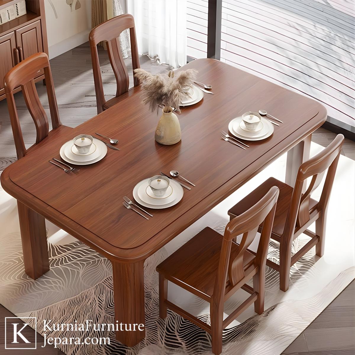 Meja Makan Minimalis 4 Kursi Kayu Solid Elegan