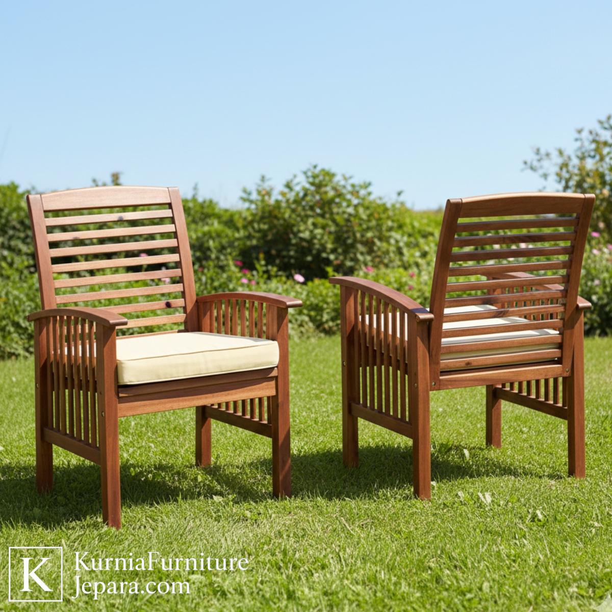 Kenyamanan menjadi keunggulan utama dari kursi outdoor kayu ini. Dudukan yang empuk dan cukup lebar memberikan tumpuan yang baik untuk tubuh, sementara sandaran punggung membantu menjaga posisi duduk tetap rileks. Armrest kayu memungkinkan pengguna bersandar dengan nyaman saat menikmati waktu santai.