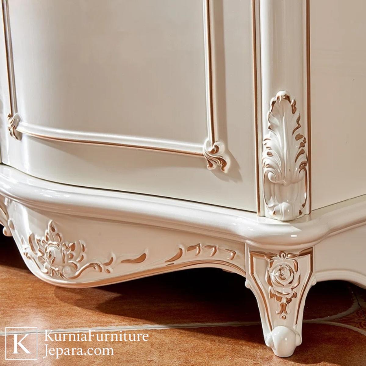 lemari kayu jati mewah ukiran klasik warna putih karya Jepara