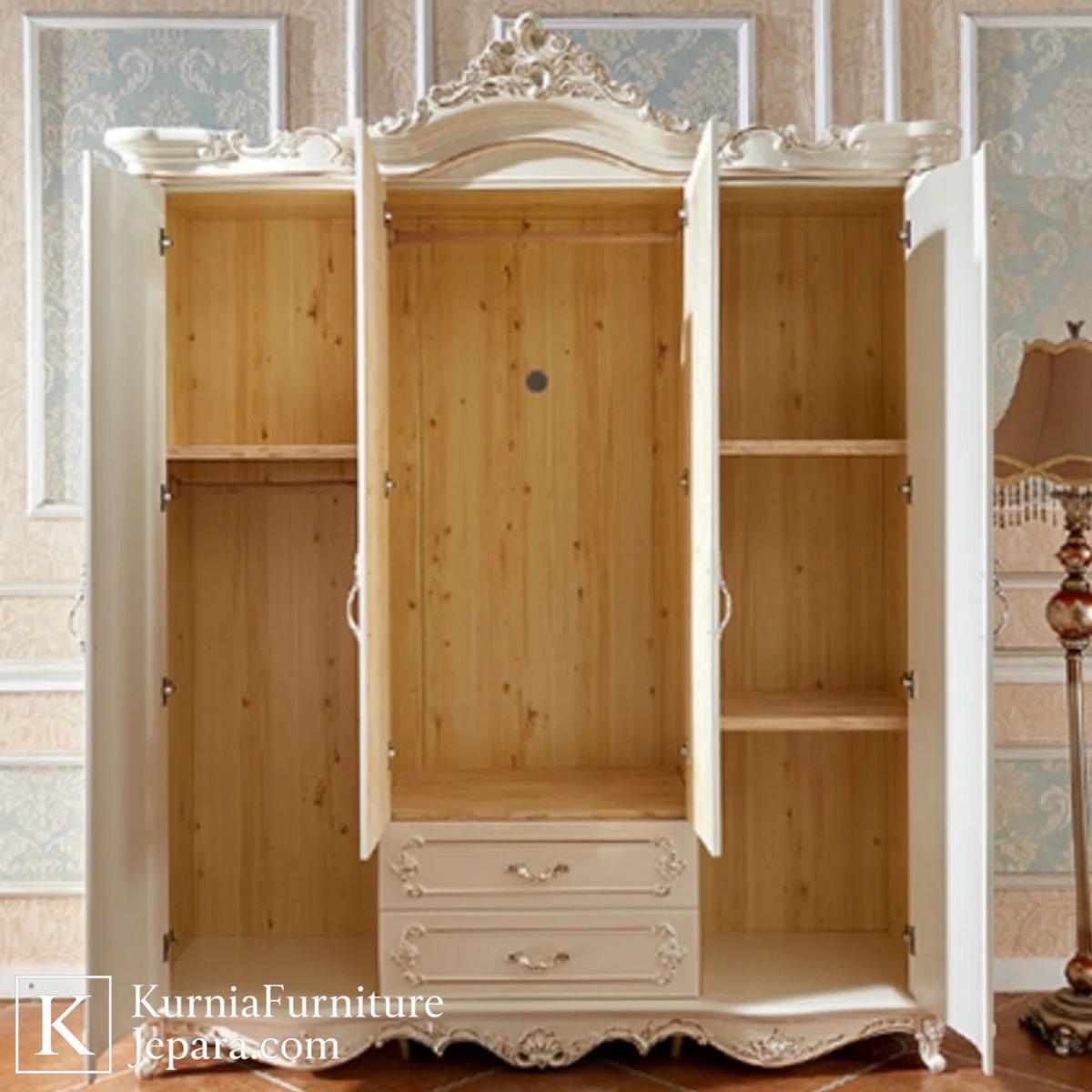 Memukau Lemari Pakaian Mewah Modern Klasik Ukir Putih Nuansa Istana