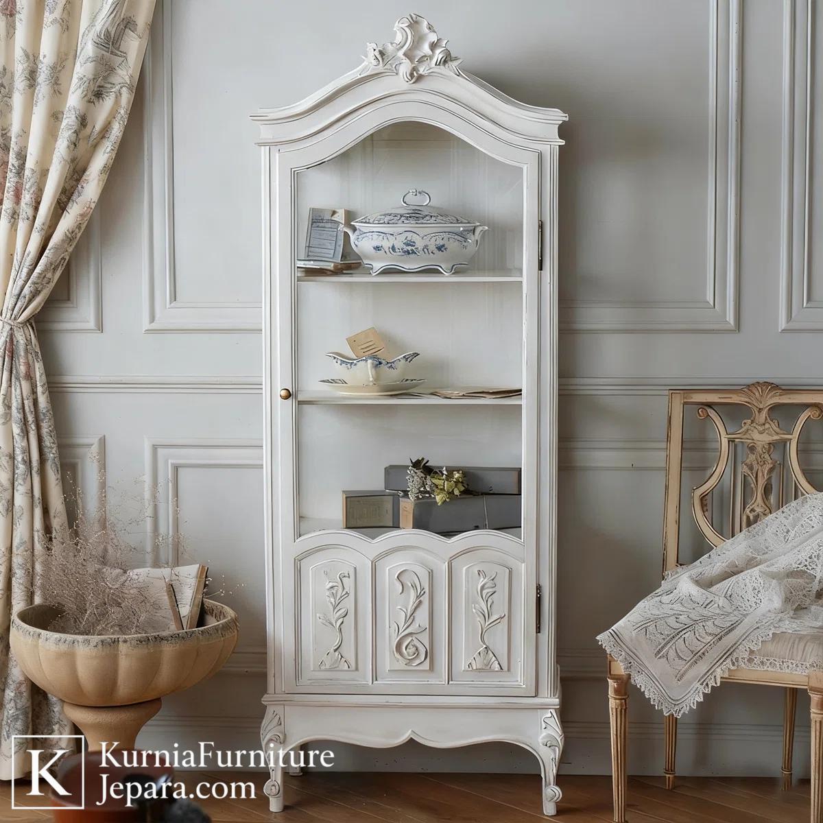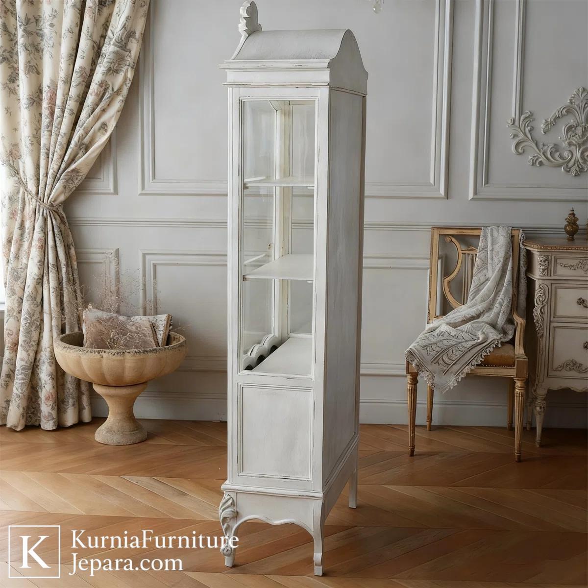 Lemari hias jati terbaru ini dirancang untuk menghadirkan keseimbangan antara keindahan visual dan fungsi penyimpanan yang praktis. Dengan warna putih lembut, garis lengkung halus, dan detail ukiran tipis khas Jepara, lemari ini tampil ringan secara visual namun tetap terlihat bernilai tinggi. Model ini sangat cocok untuk interior modern, klasik ringan, maupun gaya shabby chic yang menuntut furnitur dengan karakter elegan dan rapi.